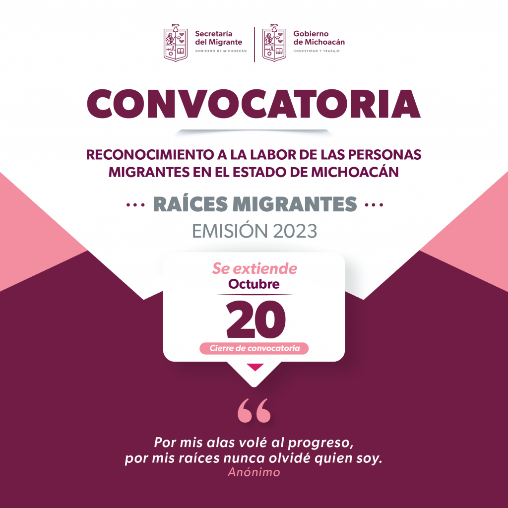 Para conocer los requisitos para poder participar se puede acceder a la liga https://migrante.michoacan.gob.mx/convo…/raices-migrantes/.