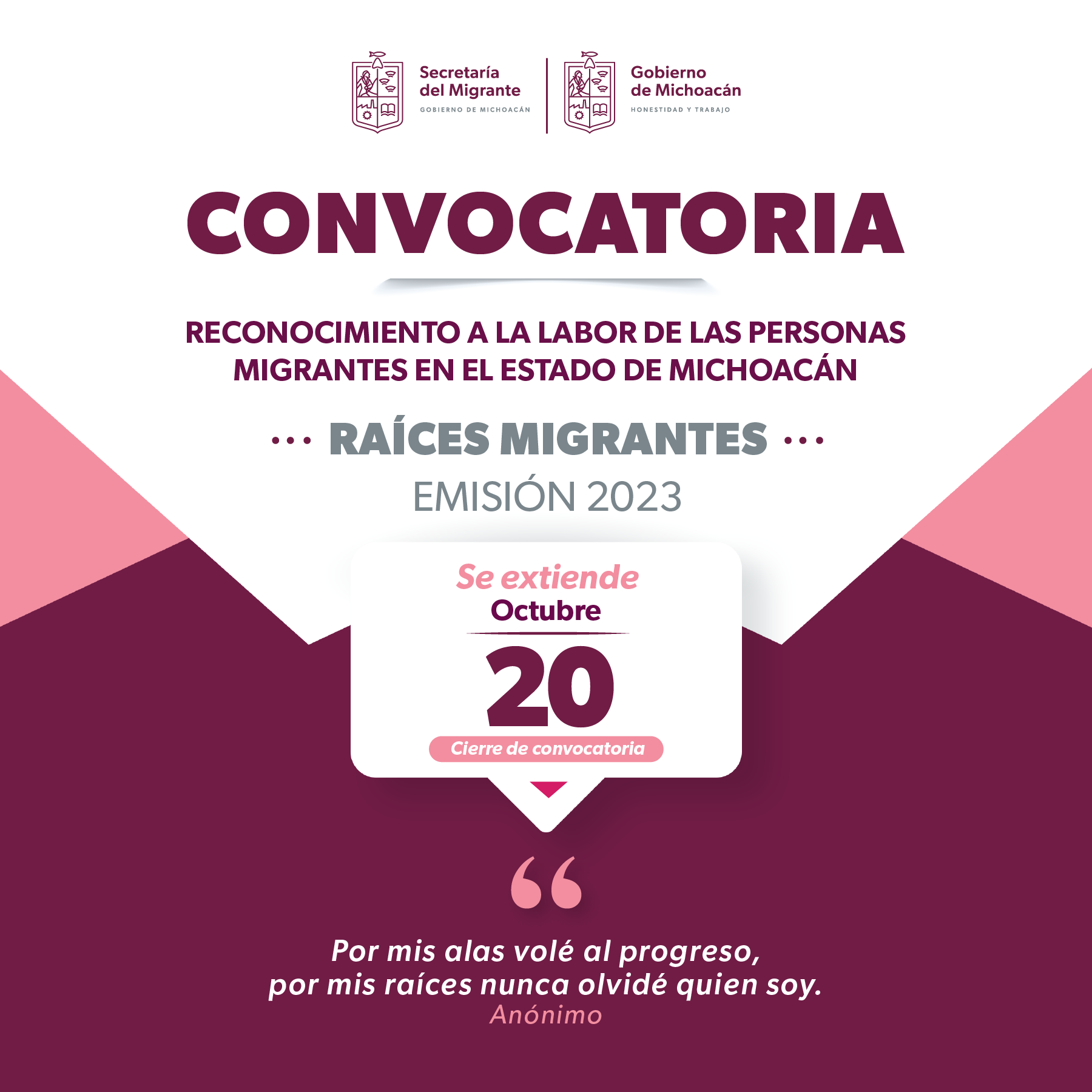 Amplían plazo para participar por el premio Raíces Migrantes