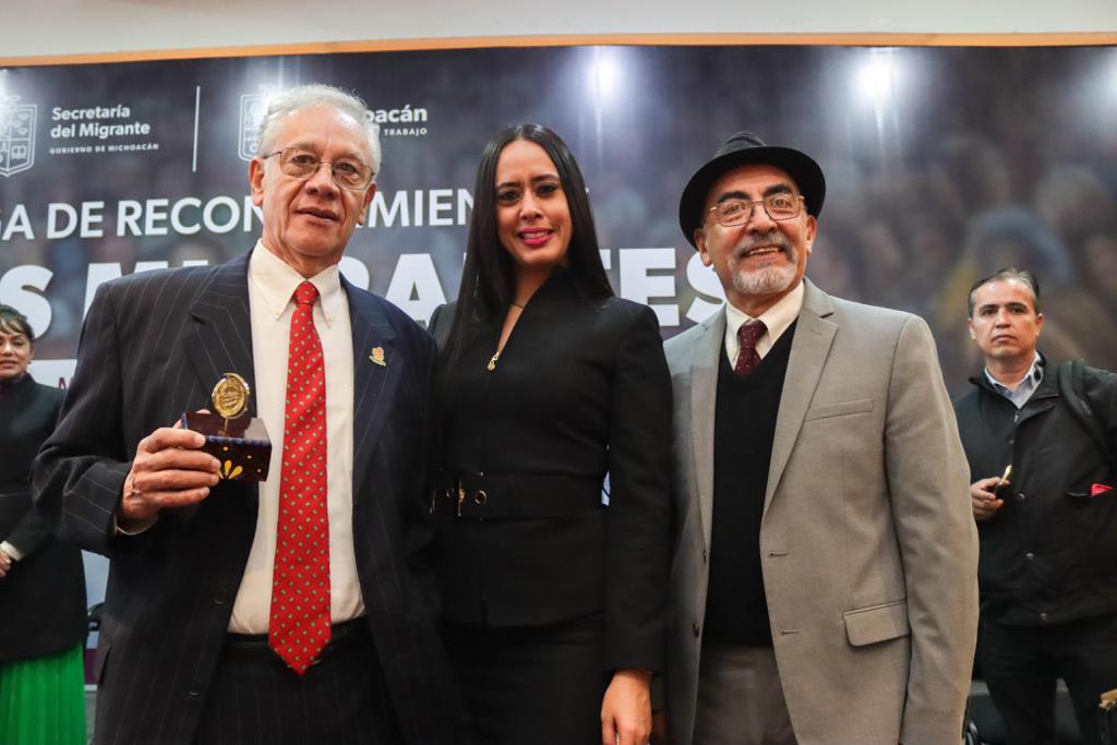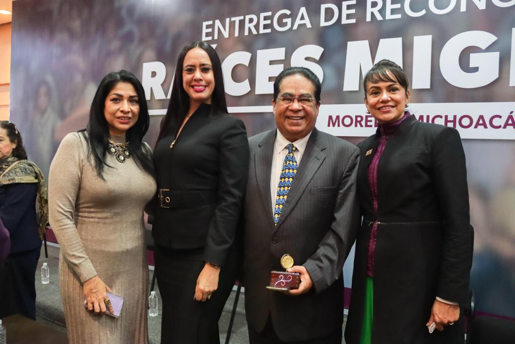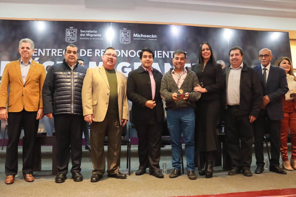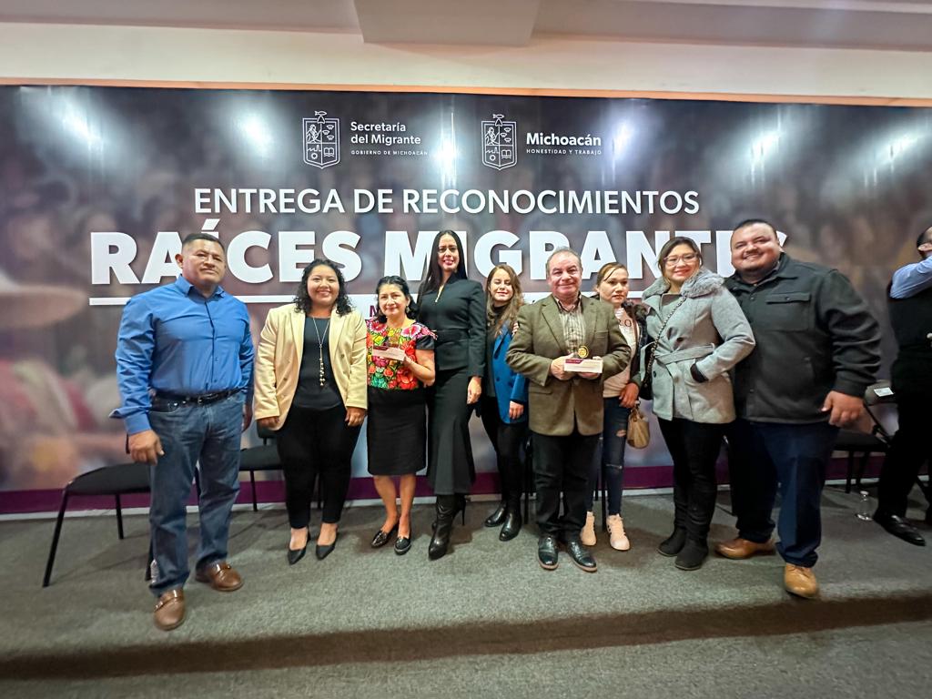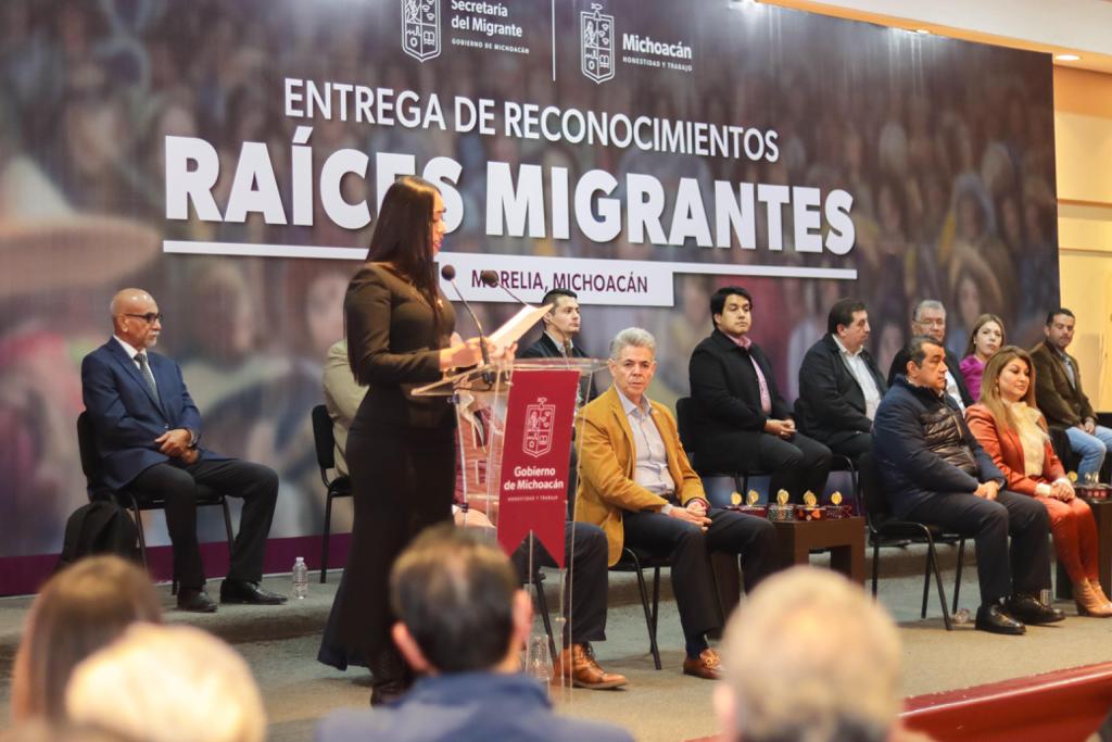 Morelia, Michoacán, 13 de diciembre de 2023.- El Gobierno de Michoacán entregó este día la Presea Raíces Migrantes a 20 paisanas y paisanos que han contribuido al bienestar de sus comunidades.
