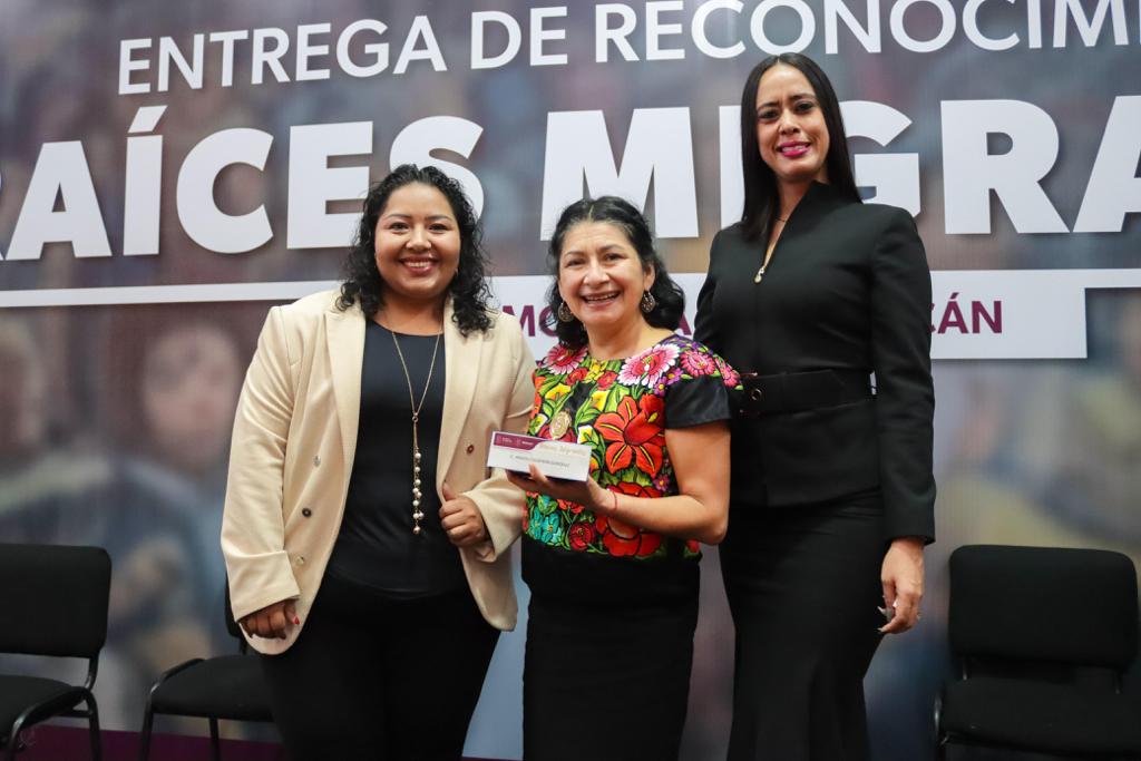 Las y los galardonados de Raíces Migrantes son Araceli Calderón González, María del Socorro Murillo Guerrero, Araceli Naranjo Cisneros, Teresa Alonso León, Claudia Mejía Ramírez, Sandra Jasmín Gutiérrez de Jesús, Alejandra Ayala Fabián, Violeta Suazo Sánchez, Mariana Gómez Amezcua, Maricela Martínez Mata.