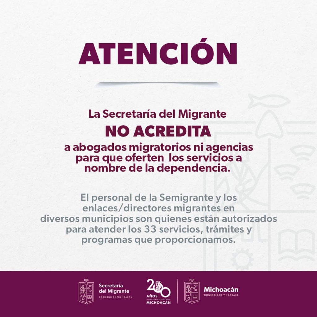 La segunda es a través de los enlaces o directores migrantes que están en diversos municipios de Michoacán, quienes tienen la facultad de iniciar la gestión de los trámites e informar a la Secretaría del Migrante sobre los mismos para su asesoramiento.