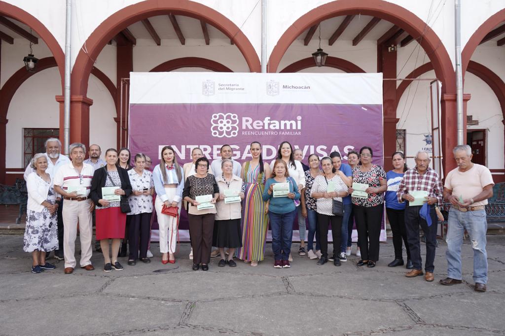Morelia, Michoacán, a 30 de septiembre de 2023.- Quiroga, Michoacán, 30 de septiembre de 2023.- La Secretaría del Migrante (Semigrante) entregó visas de turista a 12 adultos mayores que viven en Quiroga, como parte del Programa Reencuentro Familiar (Refami).